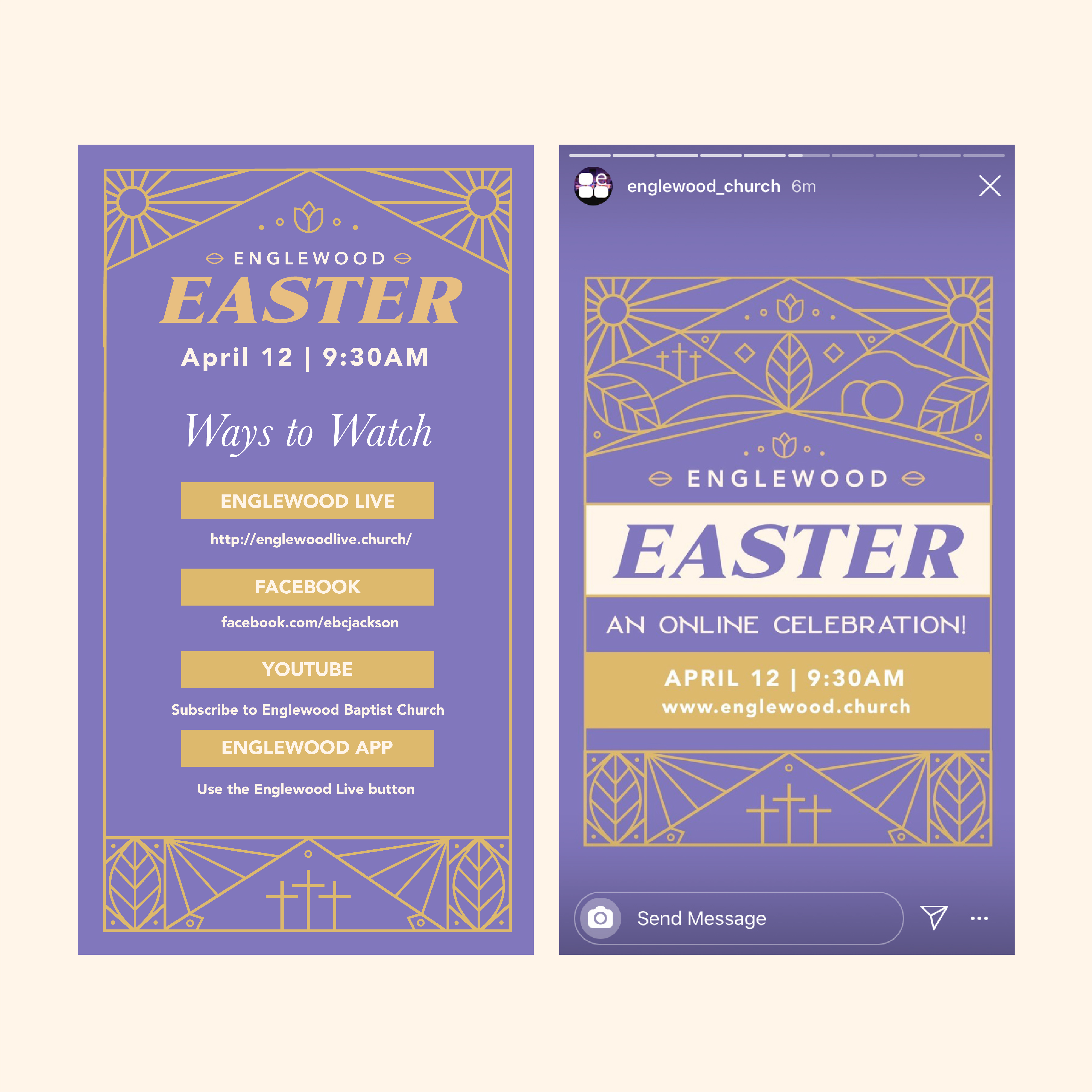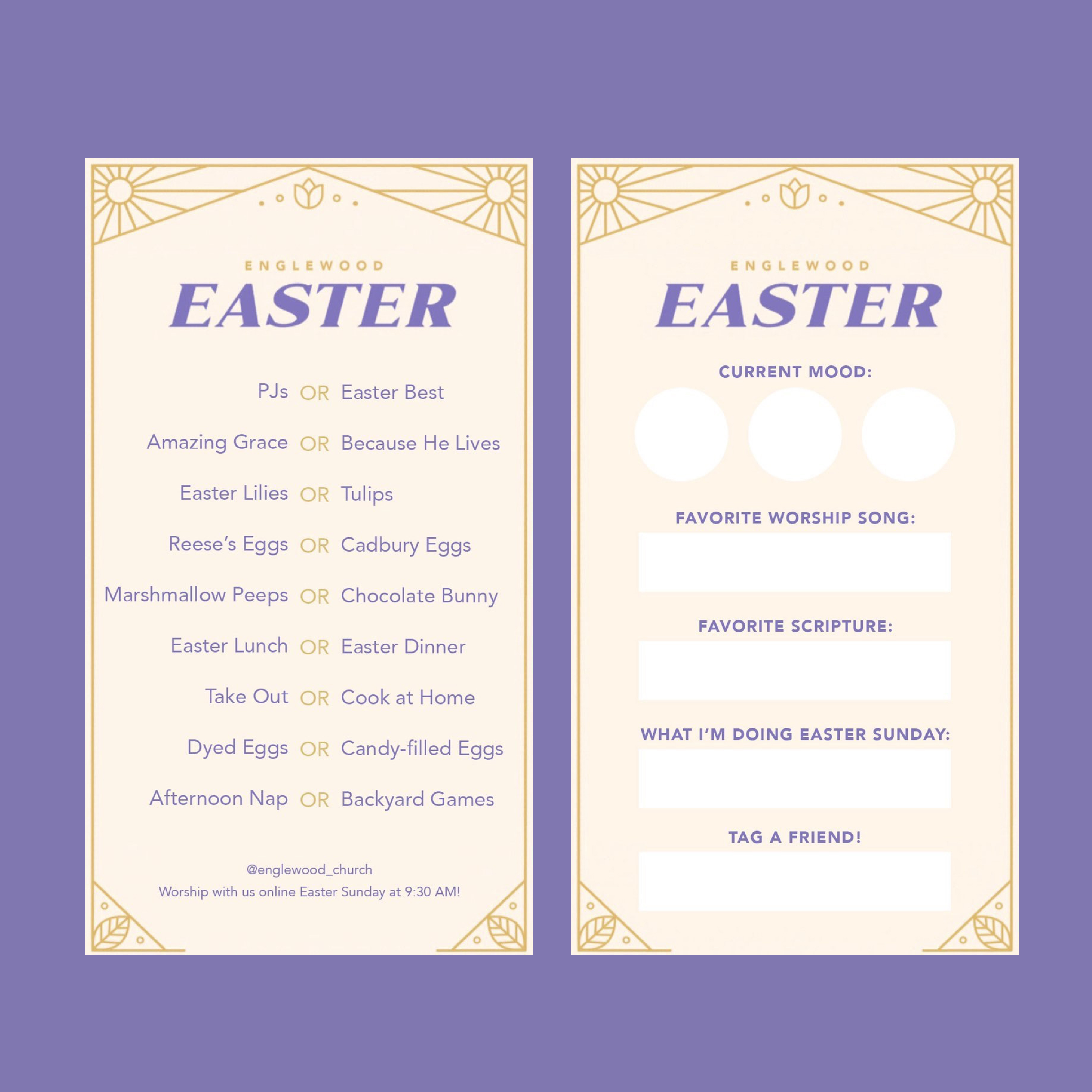 Because of COVID-19 Englewood’s communications department was tasked with bringing the easter experience into an online format. This prompted a redesign of the existing materials to reflect this change.