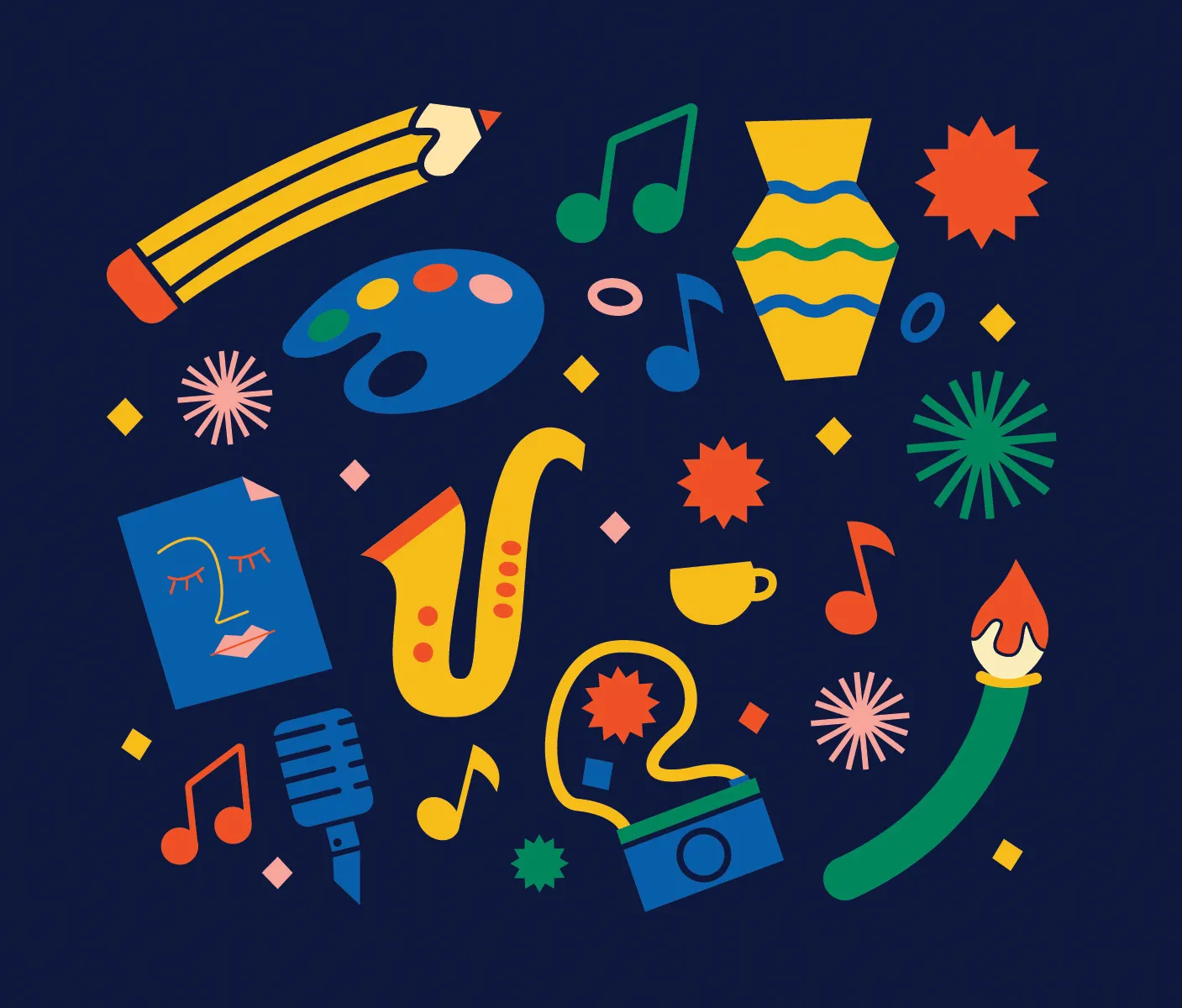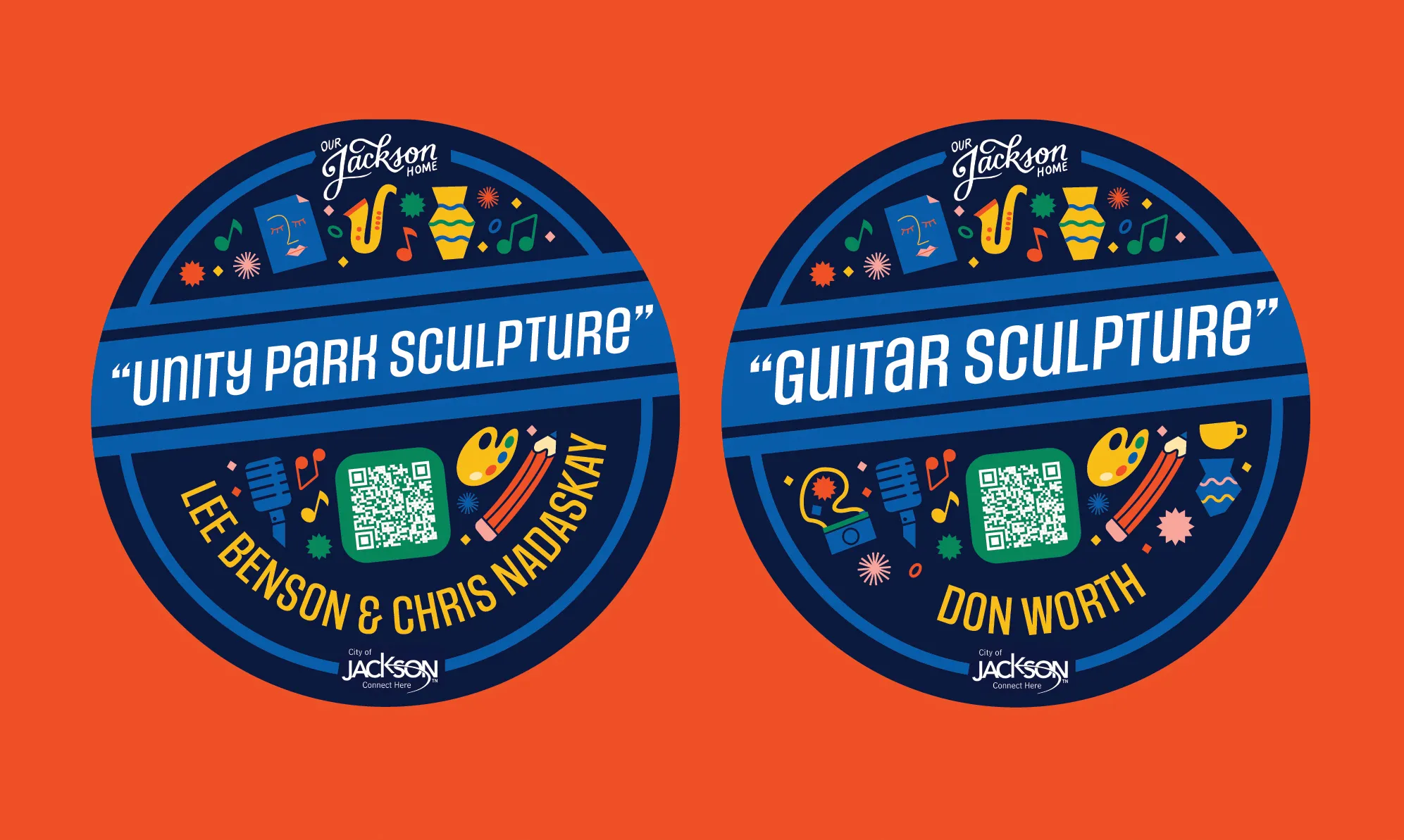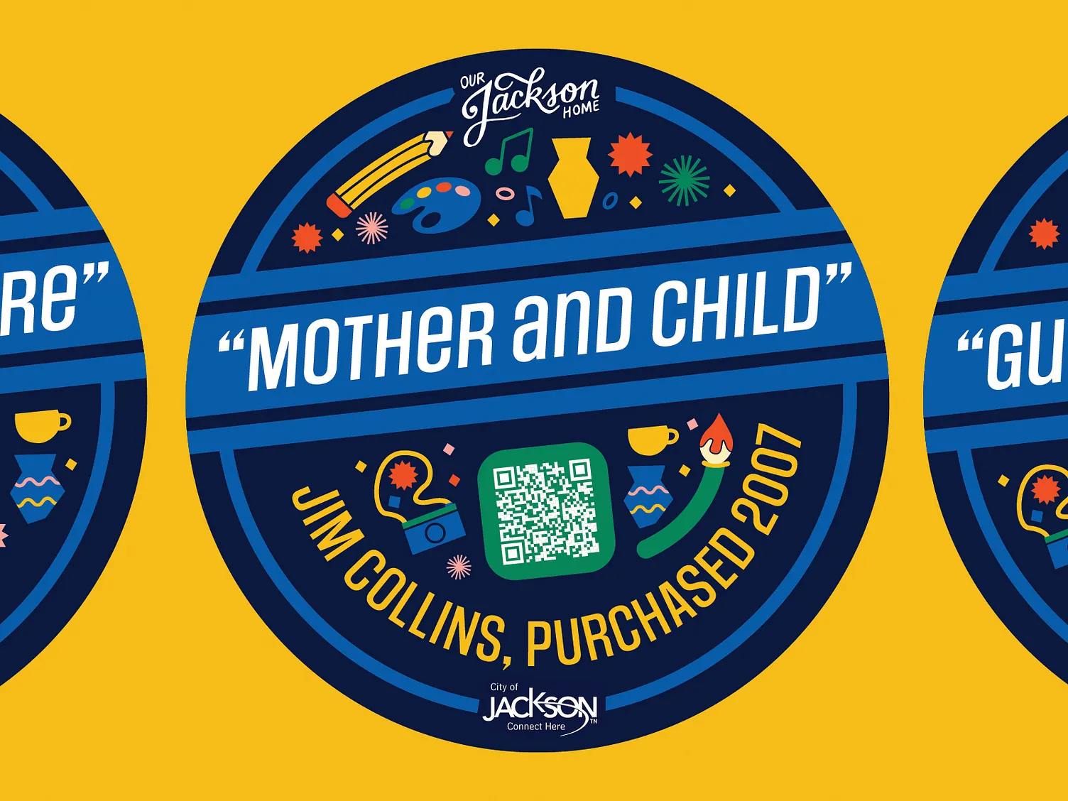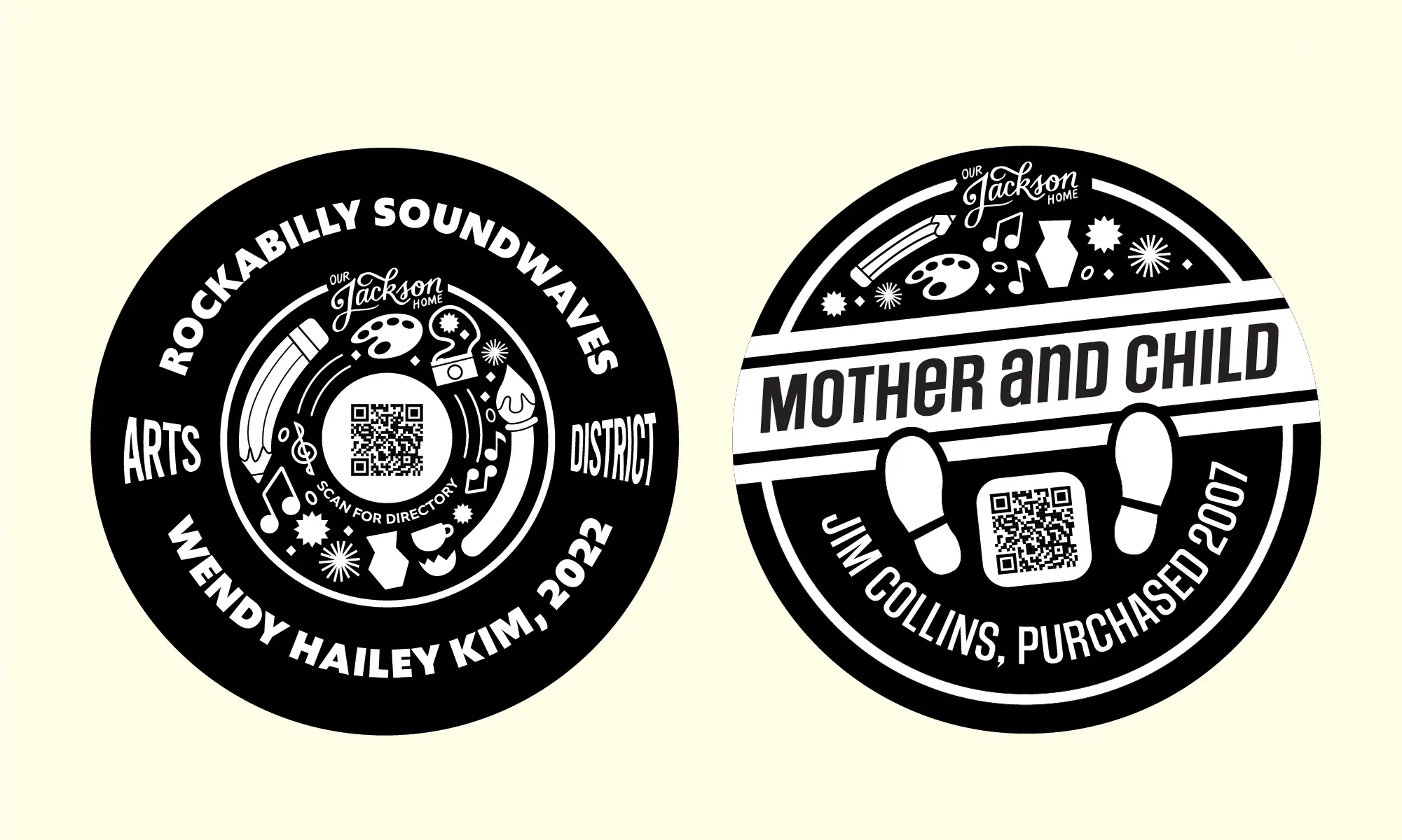 Our Jackson Home maintains the public art directory for Jackson, TN. Their team commissioned me to design sidewalk stickers that label murals, sculptures, and public art installations and feature a QR code to direct visitors to a list of artworks they could visit next as they explore downtown. The template illustrations encompass a wide variety of art mediums and textures so they can be utilized for any installation.